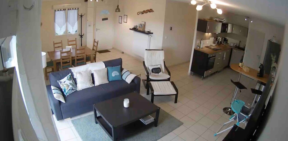 À 3min de Honfleur, 9min du Port. Calme absolu. Charmante petite maison individuelle de campagne de 52m² située à Gonneville-sur-Honfleur. •2 chambres, 3 lits •Jardin 1.500m² entièrement clos •Linge de lit, serviettes de bain inclus •Lit et chaise bébé •Barbecue, appareil raclette •Wifi 5G 250Go/mois •Enceinte musique Bluetooth •Télévision 4K •Stationnement gratuit •Caméra de surveillance Parking •Animaux de compagnie acceptés •Supermarché, station essence à 2kms •Arrivée tardive possible