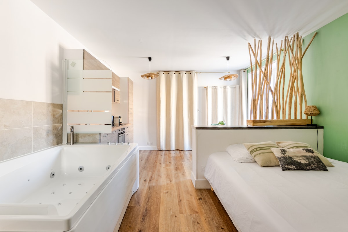 Small cocoon of 25m2 nestled on the 3rd and last floor of an old building. The apartment has been completely redone and thought with taste by an interior decorator. You will also find first necessity products like soap, olive oil or coffee pods... sit back and enjoy! On foot or by bike! If you are by car, you can park your car at Place de Verdun (paying) and on the Chemin des Remparts (free). The district lives in tune with its halls.