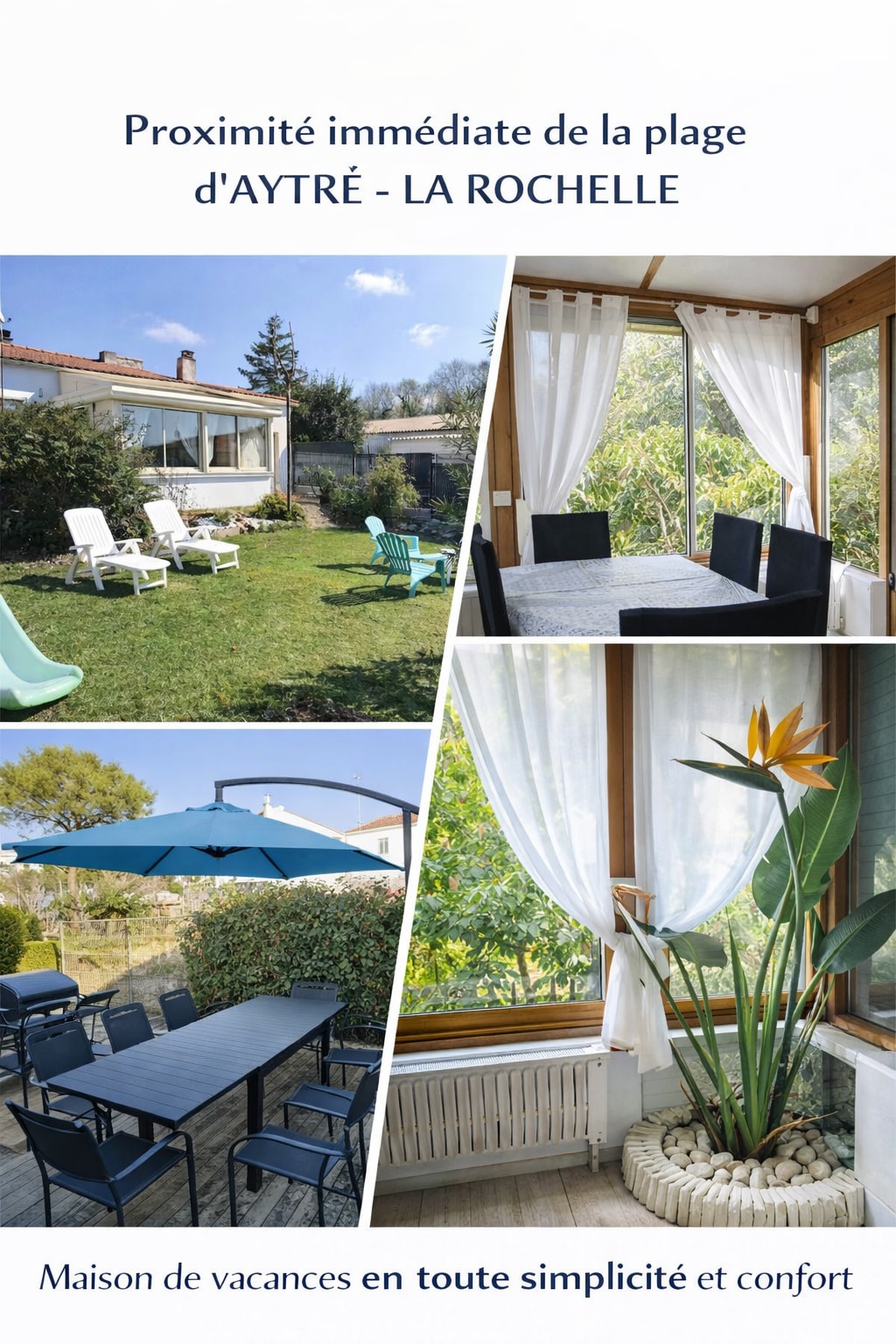 Charentaise avec pièce à vivre de 57 m2 dans un "esprit loft". 5 chambres dont trois de couples (super pour 3 familles). Plages à proximité (Fouras en face de fort Boyard - les 4 îles de Charente maritimes dont la fameuse île d’Aix) - borne recharge électrique 15 €jour/voiture - certaines personnes malhonnêtes se mettent malheureusement en « recharge sauvage » et souhaitent voir leur déplacement en voiture pris en charge par l’hôte…)