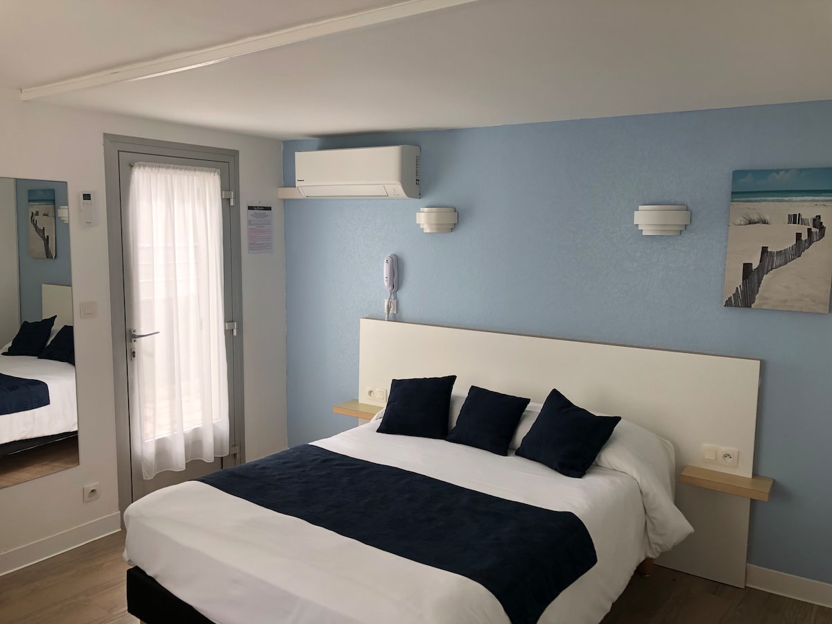 Accostage Hotel welcomes you in a neat decor in the residential area of Mail, 200 meters from the beach of La Concurrence, 50 meters from the sea and the Casino, near the historic center of La Rochelle. Our double rooms for 1 or 2 people are equipped with a large double bed with premium bedding and an office area on the 3rd floor of the property. Attention, we do not have an elevator. The private bathroom has shower, toilet, hairdryer.