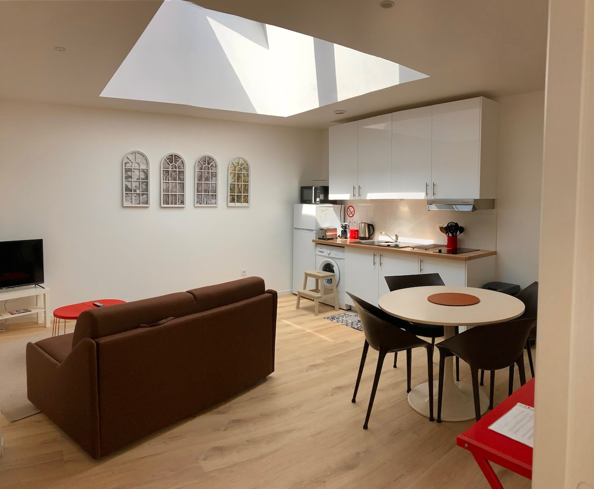 Appartement de type 2 de 40m² au rdc d’un ancien atelier entièrement réhabilité en 2019, avec avec des prestations de qualité L’appartement n’est pas exposé côté rue, résidence de 6 logements. Localisation idéale : à la fois proche de tout et quartier très calme Idéal pour les séjours affaires, les visites de La Rochelle et de ces environs, en couple ou en famille. Situé en plein centre ville, quartier saint Nicolas à côté du vieux port, à quelques pas de la vie dans une rue très calme.