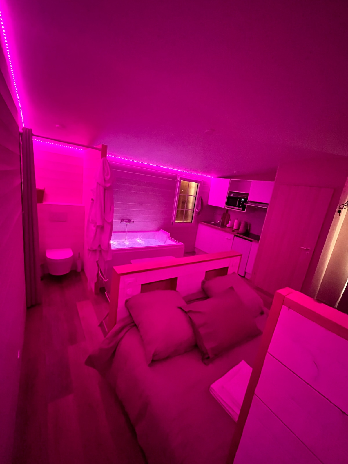 This remarkable loft offers a generous living area that seamlessly blends a stylish kitchen and an inviting lounge, perfect for both relaxation and entertainment. The upstairs sleeping area provides a serene escape, complete with the luxurious bathtub that beckons you to indulge in a tranquil soak after a day of exploration. Every detail has been thoughtfully curated to ensure an unparalleled experience, making this property a true sanctuary in the heart of La Rochelle.