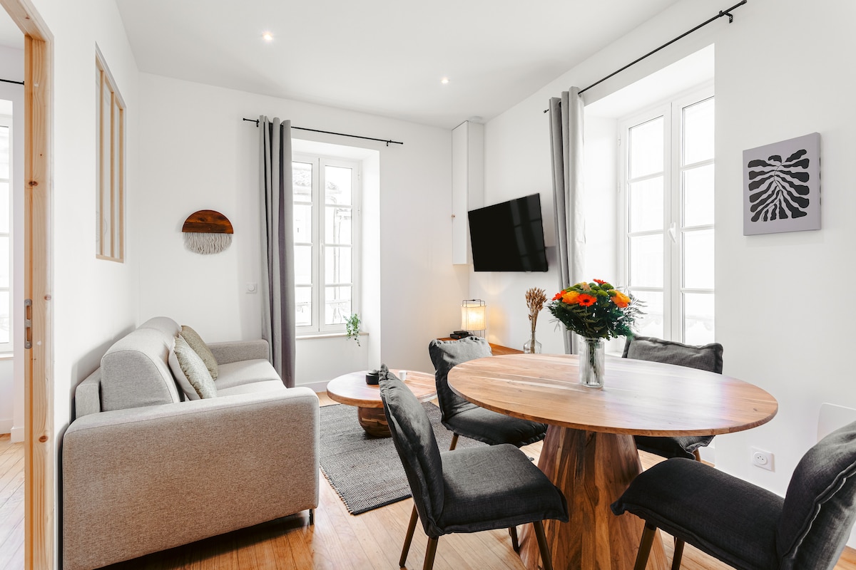 Bienvenue dans ce charmant appartement, où l’architecture rochelaise 🏛️ s’accorde parfaitement avec l’atmosphère apaisante du centre-ville. Le mélange subtil de bois naturel, de tissus blancs et de métal compose un univers lumineux et harmonieux ✨, un véritable cocon de confort et de sérénité. Situé au cœur du centre historique de La Rochelle, ce logement vous permet de profiter pleinement des commerces, cafés et animations environnants 🛍️☕️, sans jamais avoir besoin de votre voiture.