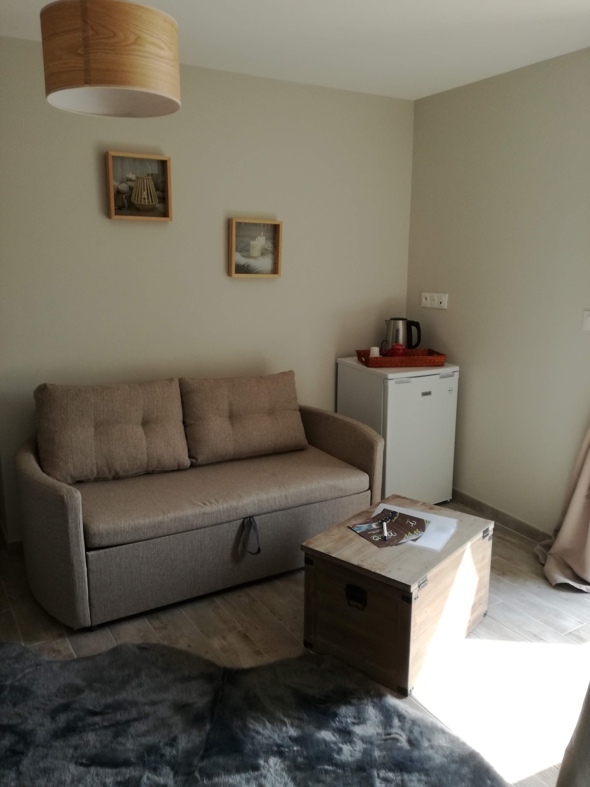 La chambre est située au 1er étage dans notre maison "La Novia", avec accès indépendant. La chambre dispose de prestations de qualité afin de prendre vos petits déjeuners et repas, table et 2 chaises, réfrigérateur d'hôtellerie, machine à café Nespresso, bouilloire, micro-ondes et vaisselle. TV, Canal+. Coffre fort. WI-FI gratuit. Attention !!! Les petits déjeuners ne sont pas proposés (boulangeries et Carrefour City à 100 m). Linge de toilette et de lit fournis. Lit (160) fait à l'arrivée.
