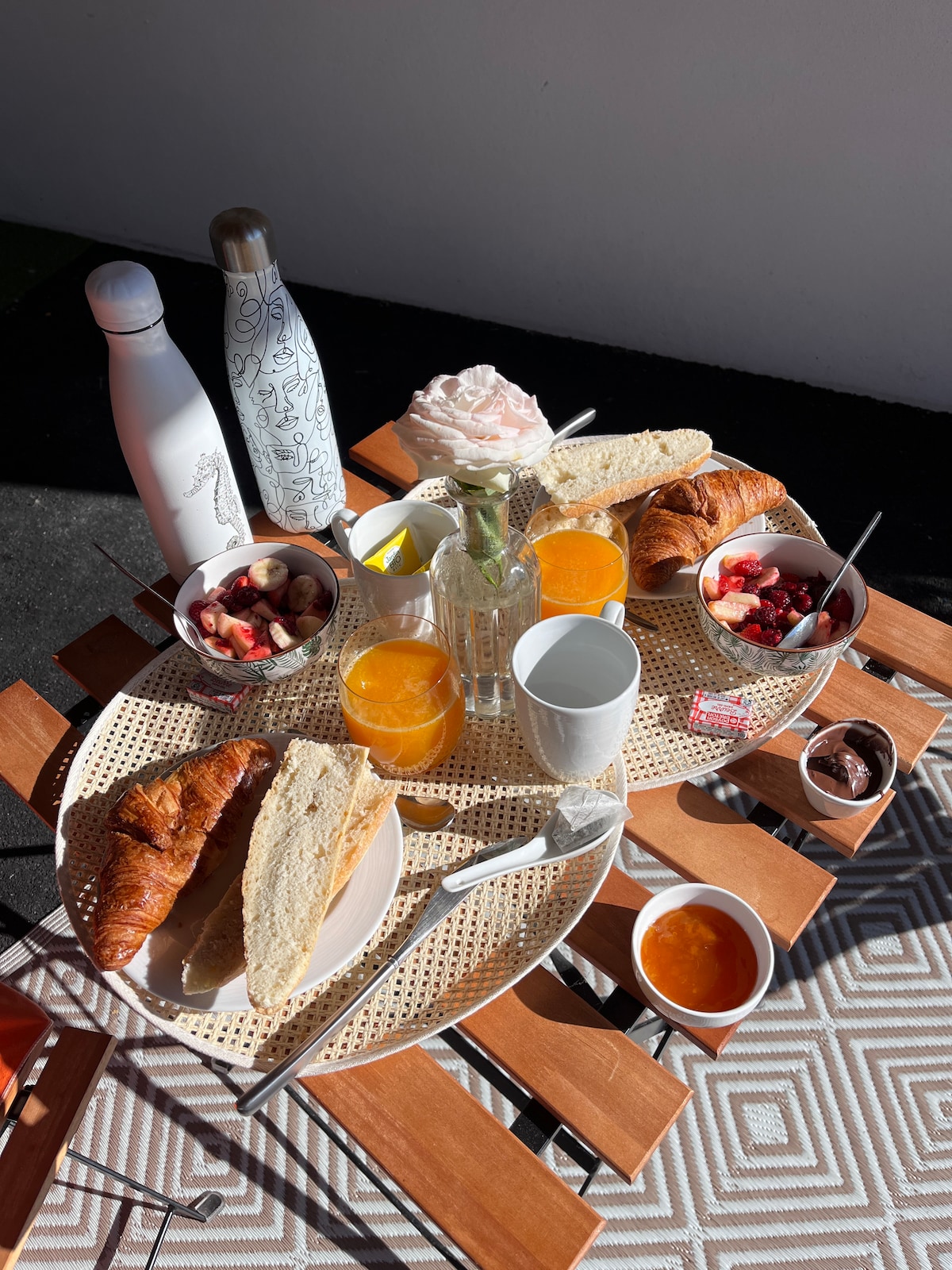 La chambre se situe à 3 minutes à pieds du centre village avec tous ses commerces , son marché et le port de la Flotte . Se trouve également à 300 m la plage . Le petit déjeuner n'est pas servi mais vous avez dans la chambre le nécessaire pour faire du thé , café et réchauffer des plats . Dispo dans la chambre également cafetière , bouilloire , micro-onde , frigidaire , vaisselles ... le parking privé clos de murs se situe à 30 mètres de la chambre.
