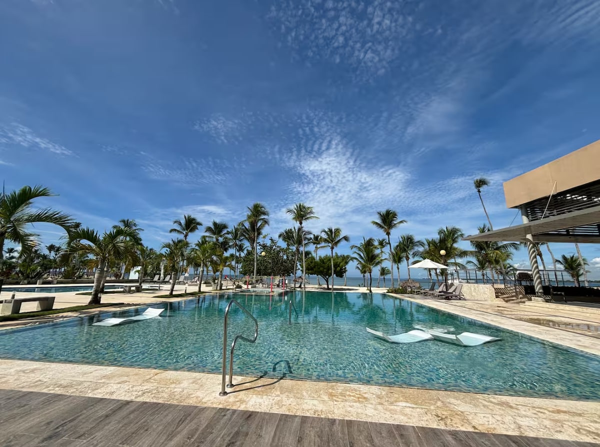 Escape to our exclusive oceanfront community in Dominicus! Perfect for couples or families (up to 2 kids), this Caribbean paradise boasts pristine white sand, turquoise waters, **No sargassum**, and stunning sunsets. Enjoy free access to the private Beach Club with a restaurant and bar, panoramic ocean views, lush tropical gardens, and 3 saltwater pools. Immerse yourself in local charm while experiencing luxury and tranquility. Your dream getaway awaits—book now and start vacationing in style!
