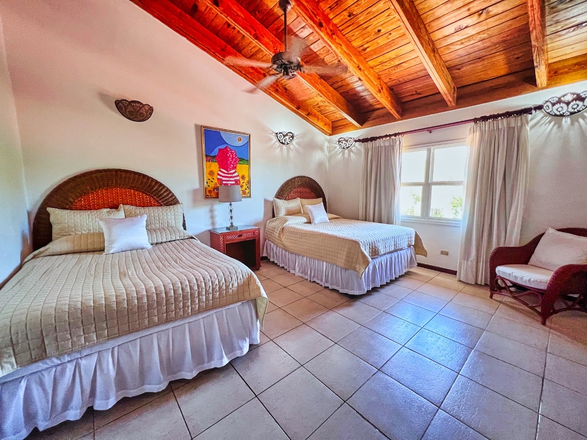 A 10 minutes walk (4 min. drive) from the quiet Los Limones neighborhood (<200 meters from the ocean) all inside the tourist complex Casa de Campo - to the private Minitas Beach. Nestled in a Bamboo grove with swimming pool. Equidistant between the marina & the golf starter for Teeth of the Dog & Links. All 5 second floor bedrooms, with walk in closet, smoke detector, air conditioning, in-room safe, free wifi, cable TV, ceiling fan and ensuite bathroom, together provide a total of 14 beds.