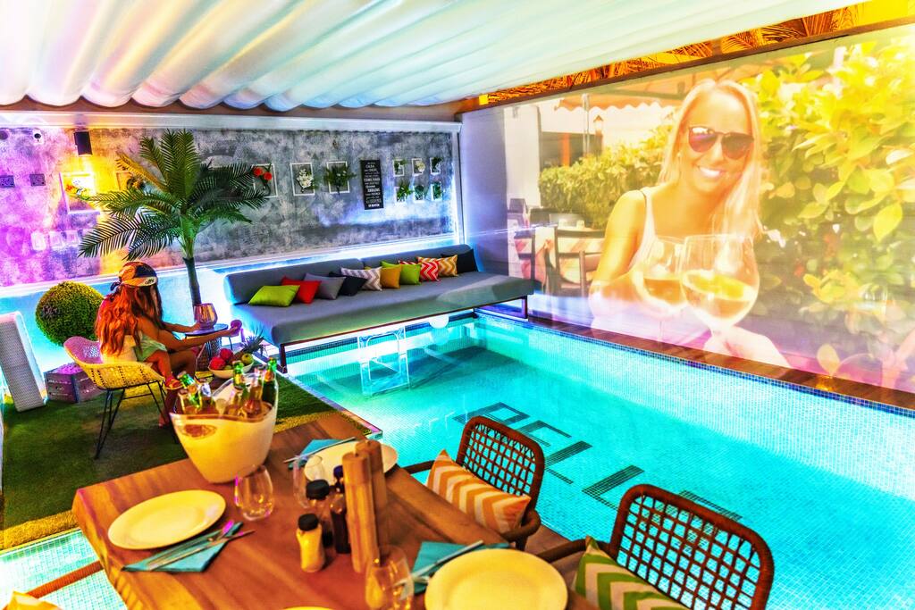 VILLA★BELLA delivers pure Luxury – featuring Designer Interior with 3 Bedrooms and 3 Bathrooms plus a Queen Sofa Bed, a Private Pool (heatable to Jacuzzi Temperature), a Designer Outdoor Kitchen with Bar, BBQ, Wine Cooler & Ice Machine, a 300" Outdoor Cinema, 4× 65" Smart TVs with Netflix, and Smart-Home Comfort with an Alexa Music System — all in an exclusive Gated Community with 5 Saltwater Pools amid a Tropical Garden, just a short walk from one of the Caribbean’s most Beautiful Beaches.