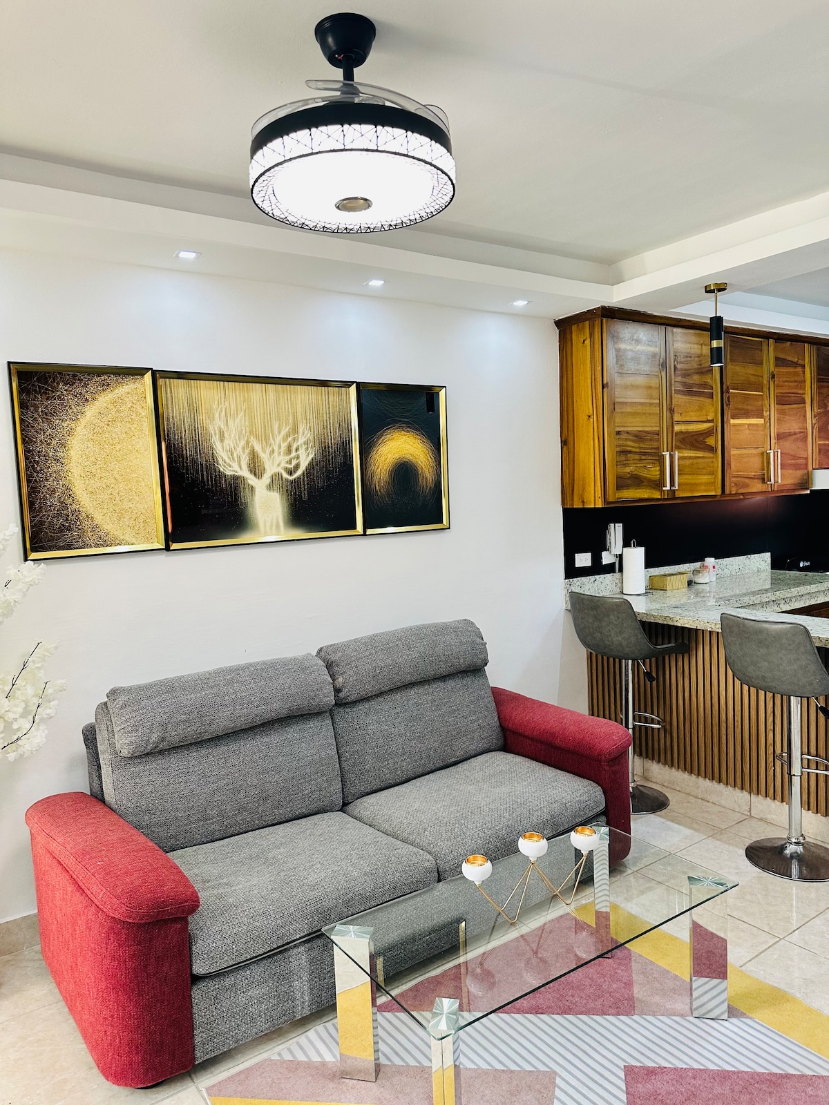 Relájate en este espacio tranquilo y elegante, 2do piso, vista a la piscina, parqueo privado, a 3 min de la playa caminando, la más visitada por turistas, como también excursiones Isla Catalina y Isla Saona, four wheel, Restaurantes Onno¨s entre otros restaurantes a la carta . Un espacio cómodo para disfrutar en pareja, familias con un niño(a), 1 habitación amplia con cama king size y dos sofá cama disponibles, seguridad 24 horas , luz , aire, calentador, dispensador, tv con canales premium.