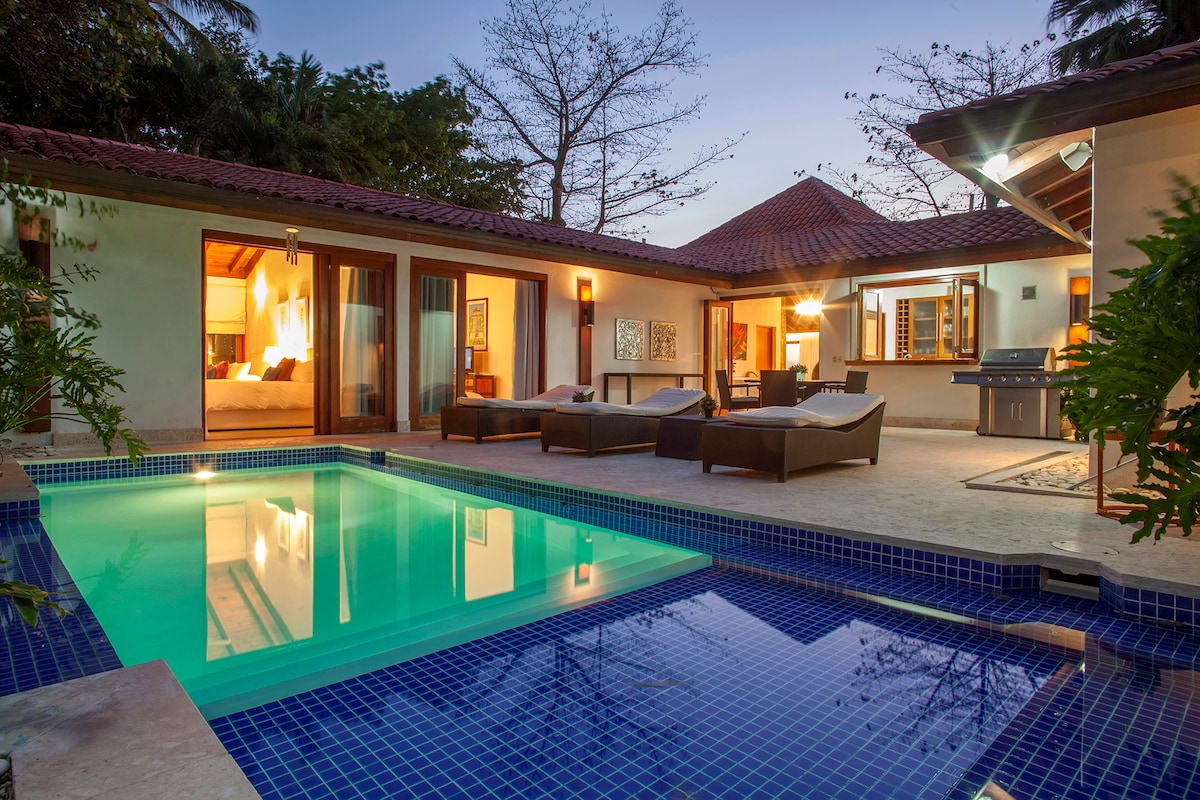 "Disfrute del máximo lujo en la comodidad de su propia y espaciosa villa. Al combinar lo mejor de la vida del resort con el beneficio añadido de contar con su propio santuario, nuestras Villas Exclusivas le ofrecen superior relajación y privacidad, con 525m2 de construcción y terreno de 1500m2, Piscina con jacuzzi climatizado, Terrazas con BBQ, vistas espectaculares al campo de golf, excelente camas. Todos los espacios con gran amplitud para hacer tu alojamiento más placentero."