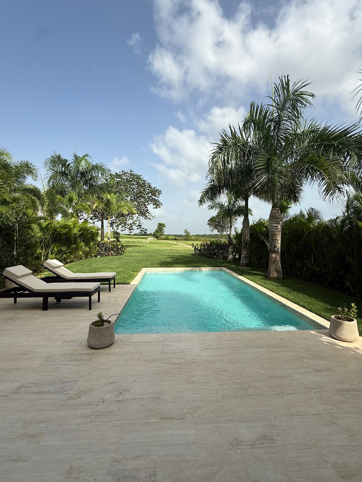 Experience luxury at Casa de Campo Resort in this NEW villa overlooking the golf course. Four bedrooms with private bathrooms and AC, fully equipped kitchen, washer/dryer, internet, smart TV, and large patio with private pool and BBQ. Parking for 4 cars available at the villa. Maid /housekeeper included at no extra cost to assist with housekeeping and prepare meals or snacks. Access hotel amenities, including golf rentals, Minitas Beach, and restaurants. Golf cart rental available for extra fee.