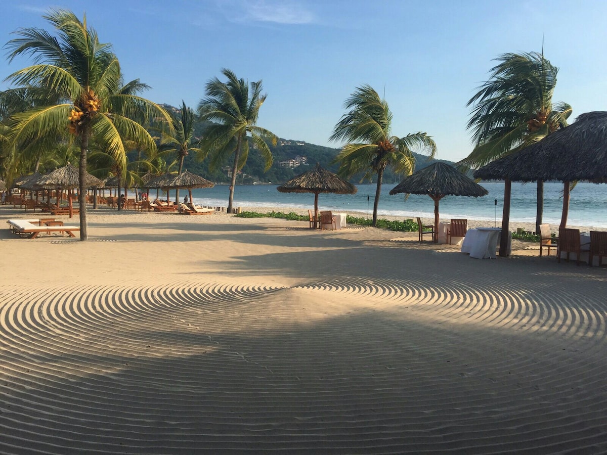 A beautiful tropical setting awaits you only two blocks from Zihuatanejo's most popular beach Playa La Ropa! Casita Rita our 1 bedroom with a kitchen and our two Bungalows, Bungalow Encantadora and Bungalow del Sol (available for rent separately) are situated around the central Palapa bar, dining and swimming pool area. All bedrooms feature AC, king size beds, luxury bedding, flatscreen TV's and beautiful outdoor showers! Free whole resort high speed WiFi! 2 adults 2 children.