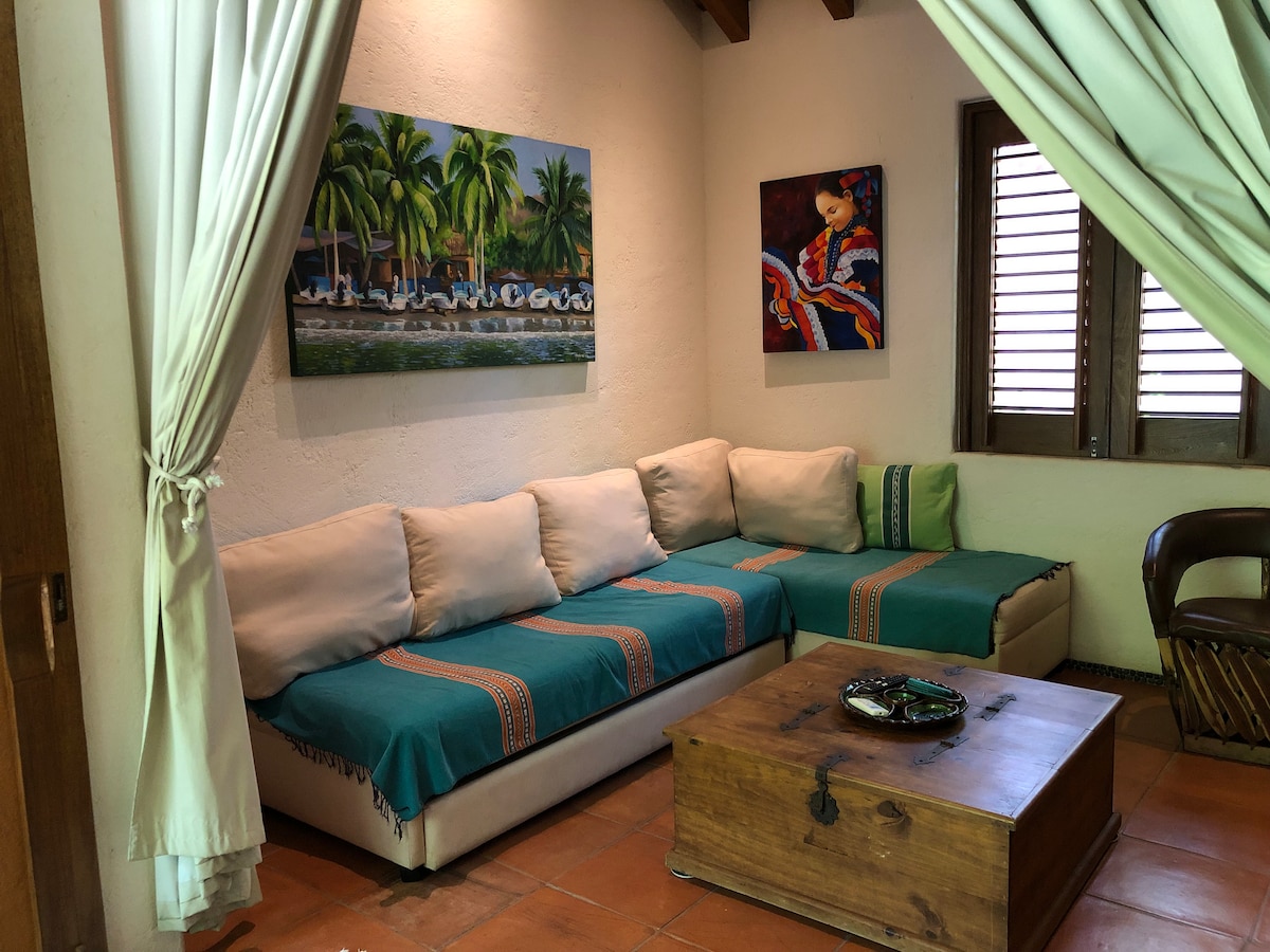 A beautiful tropical setting awaits you only two blocks from Zihuatanejo's most popular beach Playa La Ropa! Casita Rita our 1 bedroom with a kitchen and our two Bungalows, Bungalow Encantadora and Bungalow del Sol (available for rent separately) are situated around the central Palapa bar, dining and swimming pool area. All bedrooms feature AC, king size beds, luxury bedding, flatscreen TV's and beautiful outdoor showers! Free whole resort high speed WiFi! 2 adults 2 children.