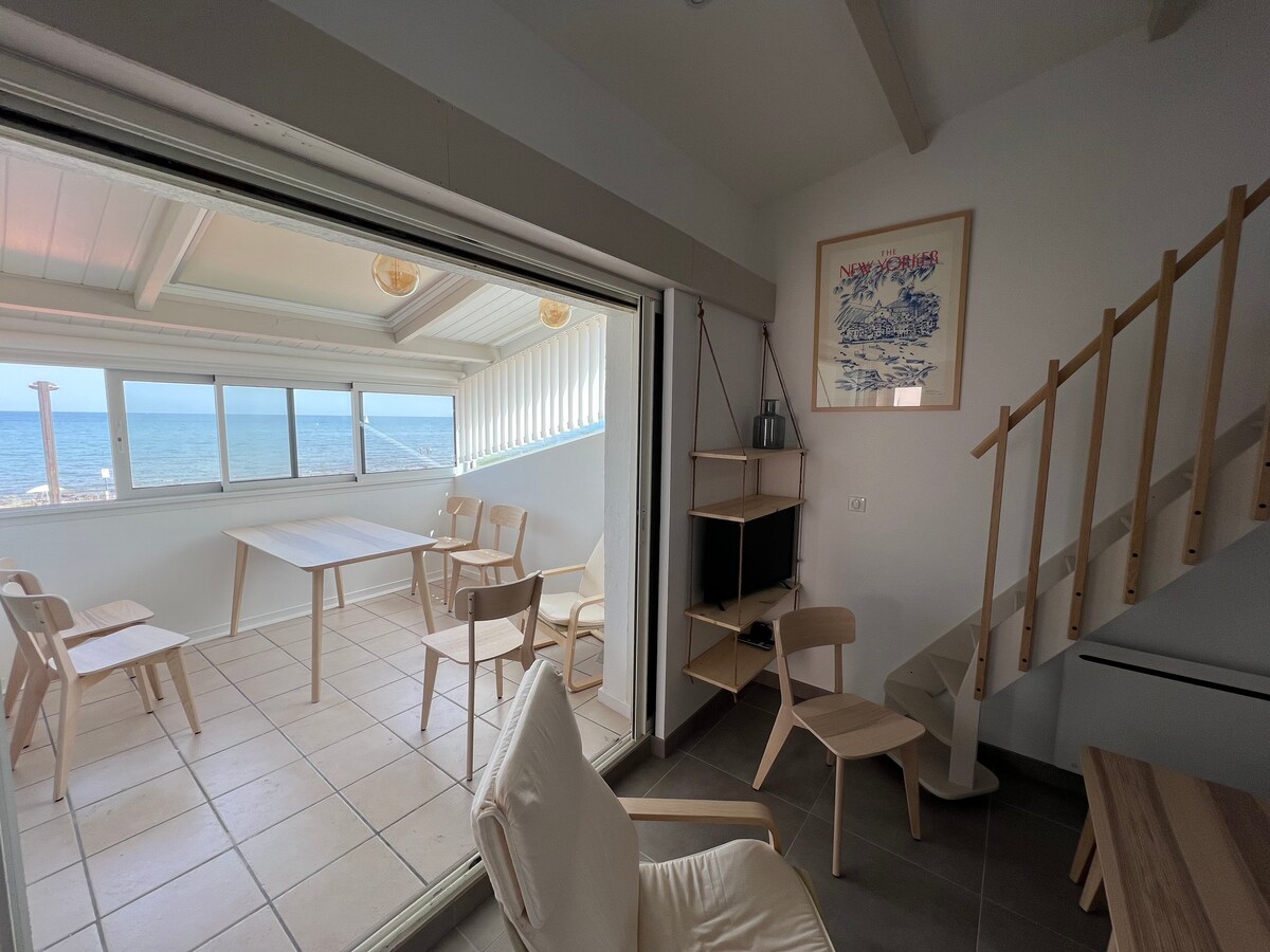 Magnifique appartement situé au 2ème et dernier etage, entièrement rénové. La vue mer à 180° sur la plage de la Roquille est exceptionnelle . Vous profiterez d'une très belle terrasse aménagée de 11 m2 au calme et sans aucun vis à vis ! Accès direct à la plage. Proche des commerces, du port, du casino, des restaurants, à 10 minutes à pied, par le chemin piétonnier qui longe la mer. Parking privé, résidence sécurisée avec gardien. Merci de lire le règlement intérieur avant de réserver.