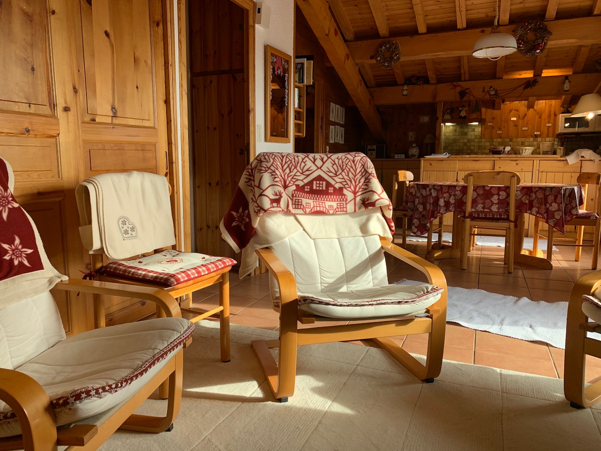 迷人的老式木石度假木屋,可欣赏勃朗峰的美景