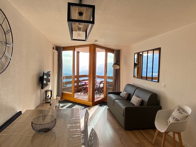 In the very center of La ROSIERE, Residence Le Belvedere, next to ski lifts (the closest one is 150m walk and Rocher Noir is 450m walk), return on ski. Newly renovated (December 2024 by my partner and me ) duplex of almost 40 m² with very cosy and design touch, incredible views. It is south/west facing & provides breathtaking sunsets. Located next to shops and restaurants. Only 30 metres aways is: ski shop Intersport, bakery & cheese shop. No car needed during your stay. Ideal for 4-5 people.
