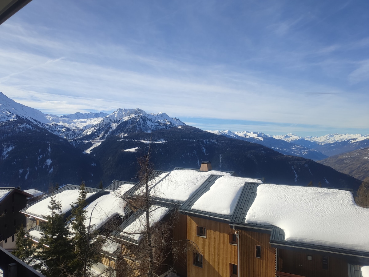 Situé dans un petit hameaux et au dernier étage de notre maison, ce studio offre un séjour à la montagne dans le calme et la sérénité. Vous disposez d'un grand espace pour vous reposer après une journée active ou simplement profiter du cadre, mais attention à ne pas vous cogner la tête sur la poutre (1m70) Vous pourrez vous garer le long de la route et accéder à la maison par un chemin escarpé de 70m. Station à 9 km en navette ou voiture, avec une vue imprenable sur la vallée de la Tarentaise.