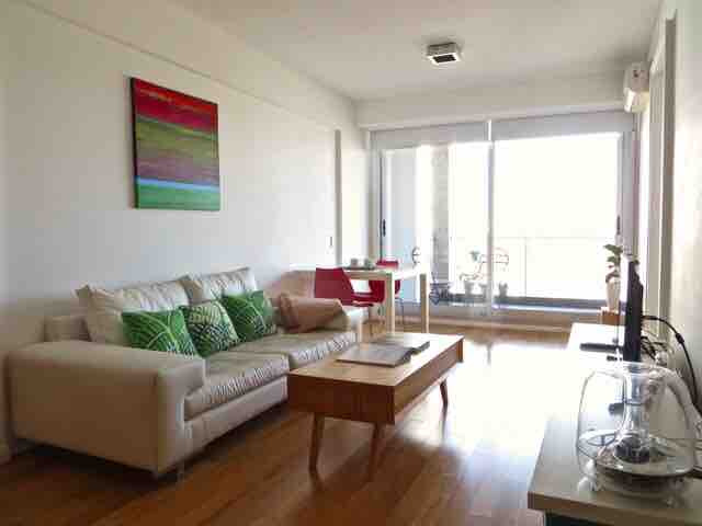 Wake up with the beautiful green view of the trees in the background, in this warm and comfortable apartment in the lively neighborhood of Palermo, surrounded by museums, shops, supermarkets and plenty of nice restaurants/bars to have a drink at sunset...With an unbeatable location it is an excellent starting point to visit the different neighborhoods of Buenos Aires. Building with security 24h/day. Internet speed 100 Mbps The apartment is cleaned with extra precautions and sanitized thoroughly. Apartamento de 50 m2 con vista verde, con balcón, en el corazón de Palermo. Tiene 1 dormitorio con cama matrimonial y 1 sillón cama de 1 plaza en el living. Black out en dormitorio y living. Posee caja de seguridad. Excelente ducha. Equipado con Internet Wi-Fi, posee 2 TV : una de 42" en el living y otra de 32" en la habitación con Netflix, 2 aires acondicionados, calefacción, microondas, tostadora, 1 gran heladera, cafetera y termo eléctrico, tender extensible para el secado de la ropa, plancha y tabla de planchar. El departamento ha sido reformado en mayo 2016, esto incluye pisos nuevos, colchón nuevo de alta calidad así como ropa blanca. En diciembre 2016 se colocó una cocina nueva, eléctrica. Me encuentro disponible en el celular para cualquier solicitud, consulta o recomendaciones sobre la ciudad de Buenos Aires o sobre el departamento. Apartment located in a safe and lively area, with a fantastic location that includes green spaces and an important gastronomic and cultural center very much appreciated of the city. Near the main cultural and touristic attractions. Steps from all means of public transport. Walking distance to Malba Museum. Only 10' from the Jorge Newbery National Airport. Ubicación muy práctica para moverse en BA con todos los medios de transporte públicos a 3 cuadras en Av.Las Heras y a 1 cuadra en Av.Libertador. Personas adicionales sin cargo. Se hace una limpieza general por semana con cambio de ropa blanca sin cargo. El departamento tiene puerta blindada y abajo en la recepción hay guardias de seguridad las 24h. Posee caja de seguridad.
