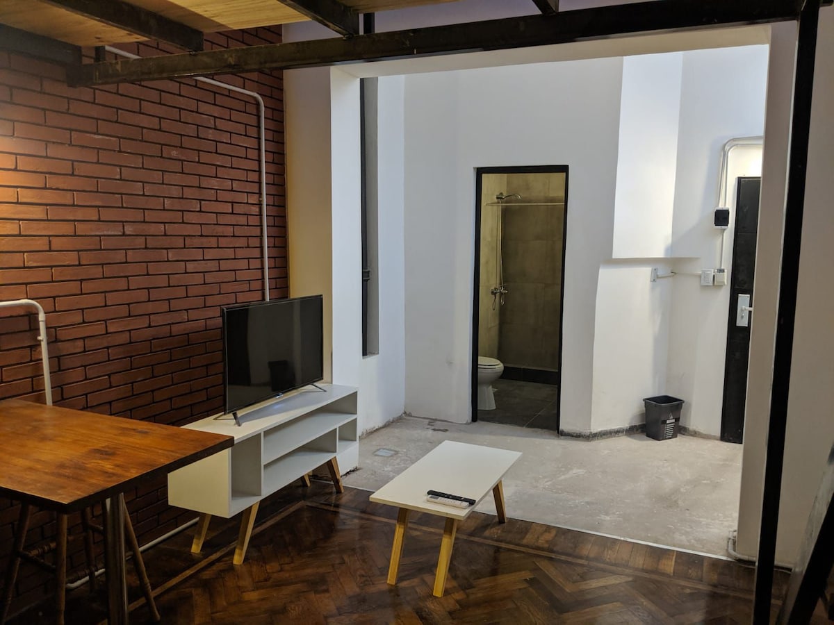 Habitación espaciosa y luminosa, cuenta con una cama doble con baño privado y tv. Ubicada en el barrio de San Telmo. Disponemos de 4 habitaciones (dobles o individuales), todas son privadas. Acceso a los huéspedes todas las areas compartidas se pueden utilizar como la cocina y lavadero con lavarropas, sala de descanso y estudio comprtida. WI-FI en todas las instalaciones. no se permite fumar dentro del lugar ni celebrar fiestas. ofrece una ubicación ideal .subte de la línea C está a 50 metros.