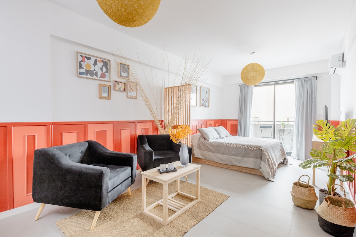 Amplio monoambiente en lo mejor de Palermo Soho, totalmente nuevo y a un paso de los mejores locales gastronómicos, medios de transporte y centros comerciales, muy bien equipado, en un espectacular edificio con piscina, gym, jacuzzi. Atendido por el mejor equipo humano: una familia!!, junto con mi esposa y mis hijos buscamos que nuestros huéspedes se sientan como en casa, atentos a todos los detalles como para brindar un servicio de excelencia para que pases tus mejores días en Buenos Aires!!