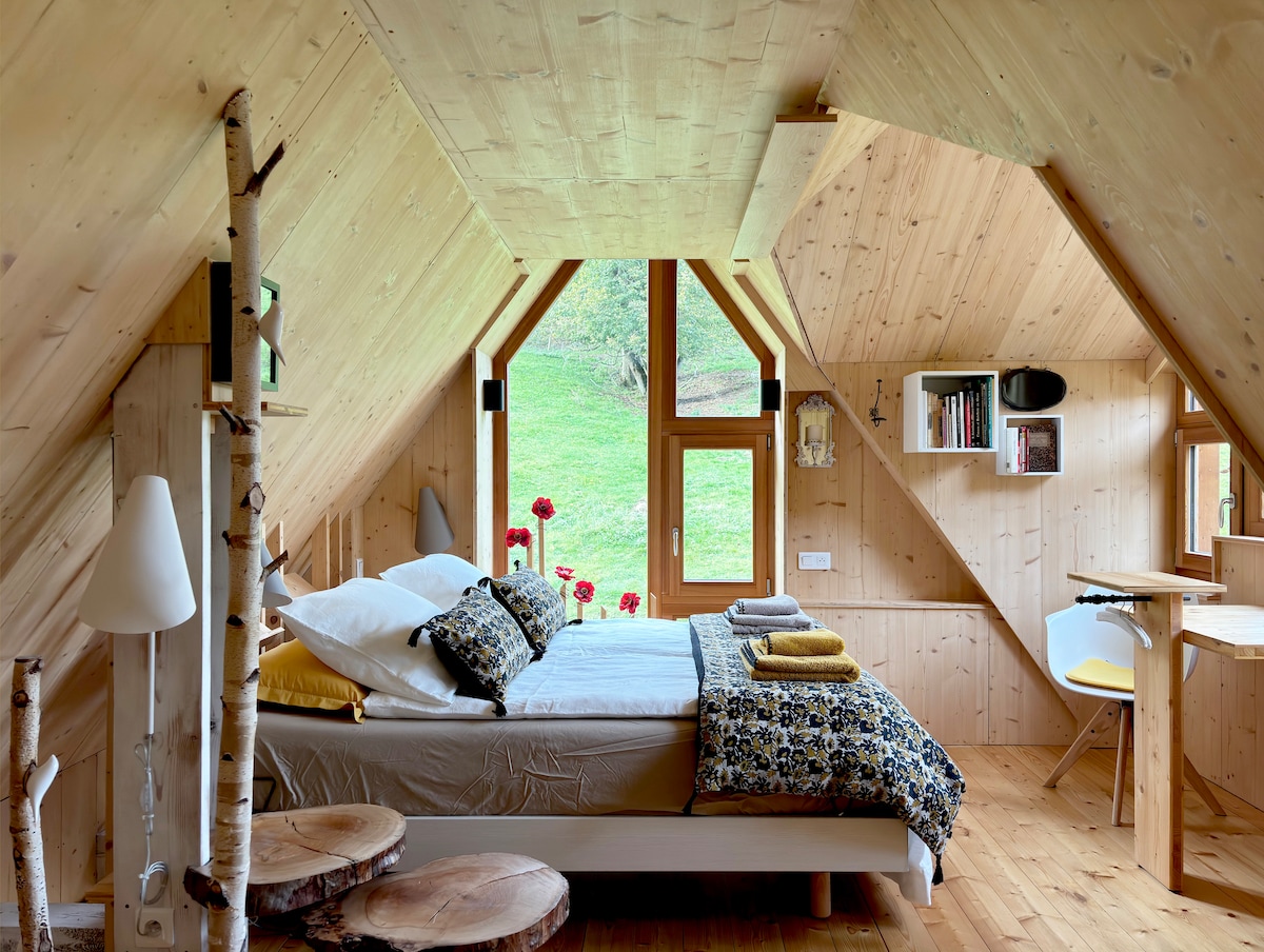 Nous sommes tombés sous le charme de cette vue incroyable sur la montagne et avons construit ce petit chalet juste à côté de notre maison : une « guest house » située à presque 1000m d’altitude. #bikoque.vosges Cet endroit paisible, exposé plein sud est notre petit coin de paradis ! Il permet de profiter pleinement des joies de la montagne : Domaine de ski de fond accessible à pied Pistes de ski alpin à 5min. À pied comme à vélo, la forêt est juste ici, à notre porte !