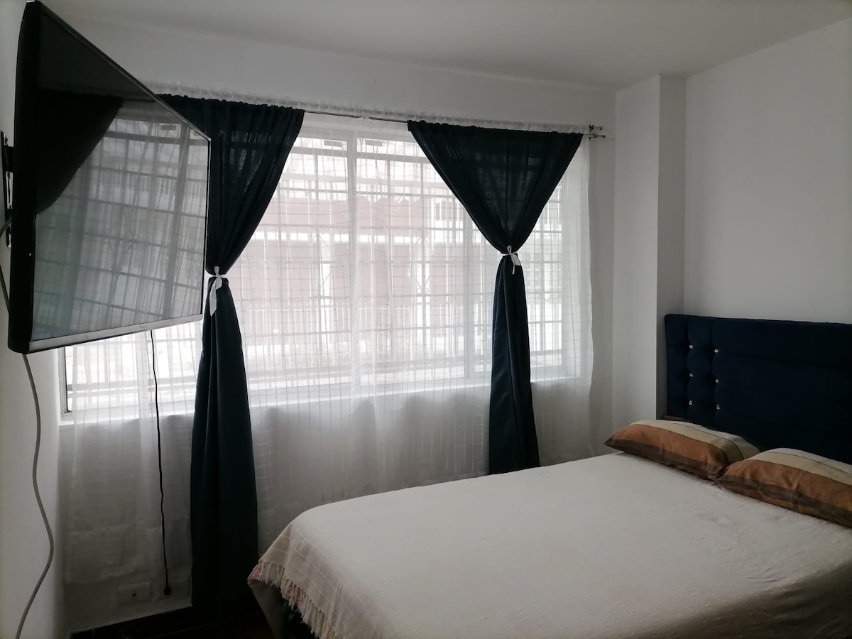 Amplio y luminoso apartaestudio en el Noroccidente de Bogotá con una confortable zona de trabajo y Wifi. Equipado con todo lo necesario para una cómoda estancia. Ideal para viajeros solos o en pareja. Con opción de parqueadero para una moto. Cercano a supermercados, gimnasios, piscina, Humedal Juan Amarillo, Club de Golf Los Lagartos, Parque Mirador de los Nevados, Parque Las Cometas, centro comercial Centro Suba y Titan Plaza. Múltiples vías de acceso y variedad de transporte público.