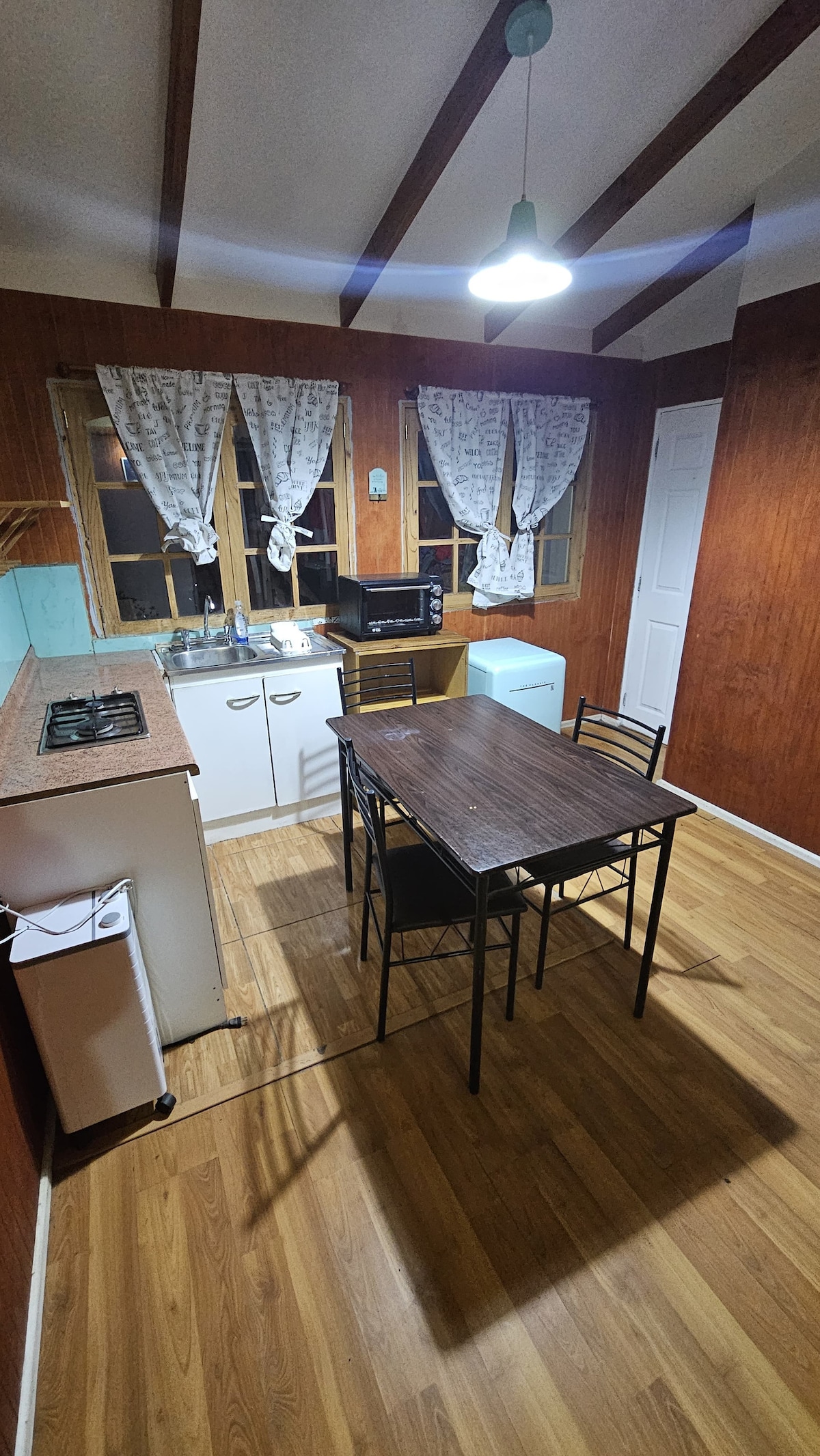 Arriendo cabaña para 4 personas como Máximo. Se encuentra ubicada a la altura del aeropuerto de La Florida, en sector Ceres Norte. Se adjunta imagen descriptiva del cómo llegar, la cabaña está a 20 min aproximadamente de la playa y a 20 min Del Valle. La casa cuenta con 3 áreas disponibles como se muestra en la fotos, tiene cama de 2 plazas, cama de 1 plaza, 1 futón, cocina, comedor y baño. Estacionamiento disponible. Idealmente llegar en auto.