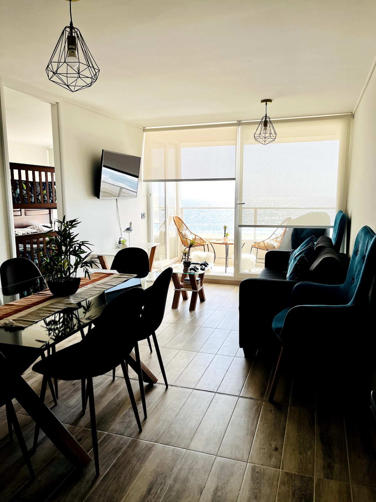 Para descansar o trabajar con la mejor vista y ubicación de La Serena. Precioso y acogedor departamento en primera linea de Avenida del Mar, a pocos pasos de Casino Enjoy y cercano a los mejores restaurant de la ciudad. Totalmente equipado para 4 personas, con estacionamiento privado y todo lo necesario para relajarte y solo disfrutar. Vive el mejor descanso con las mejores comodidades.