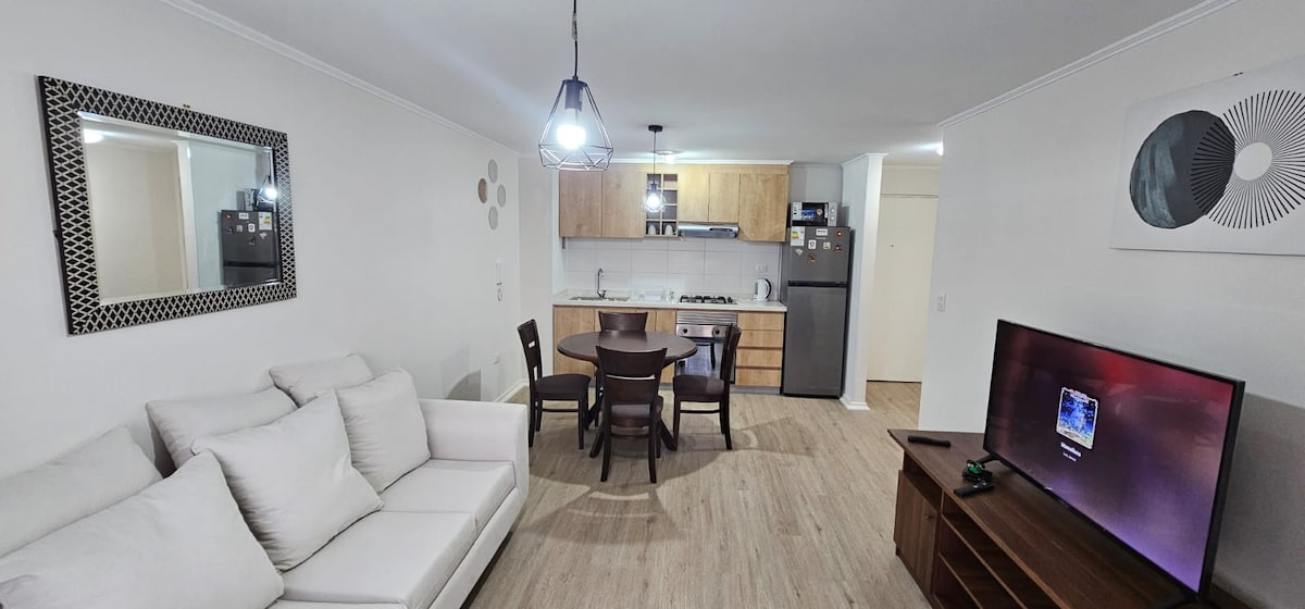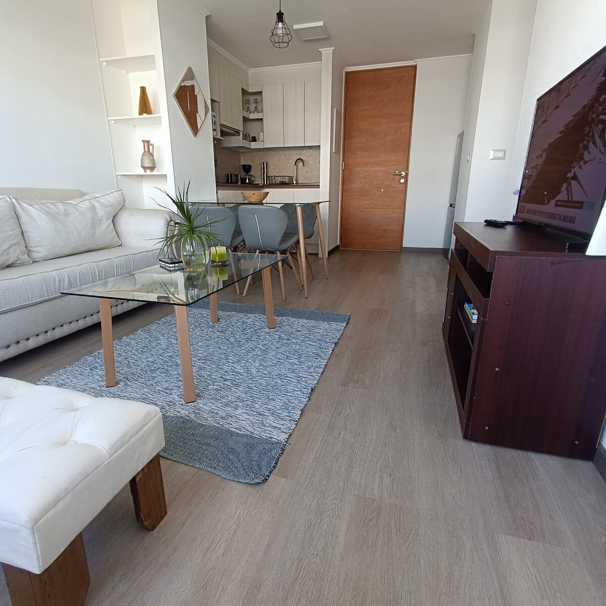 Departamento recien amoblado a pasos de la playa de La Serena y Coquimbo, cercano a comercios y restaurantes, cuenta con 2 dormitorios, estacionamiento, piscina, parrilla, televison por cable e internet. A pasos del casino enjoy No pagas por estacionamiento, ya que cuenta con estacionmiento privado. No pagas lavanderia, ya que cuenta con lavadora y secadora en el departamento. Equipada, horno electrico, cafetera, licuadora, parrilla electrica. 2 televisores de 40 y 43 pulgadas