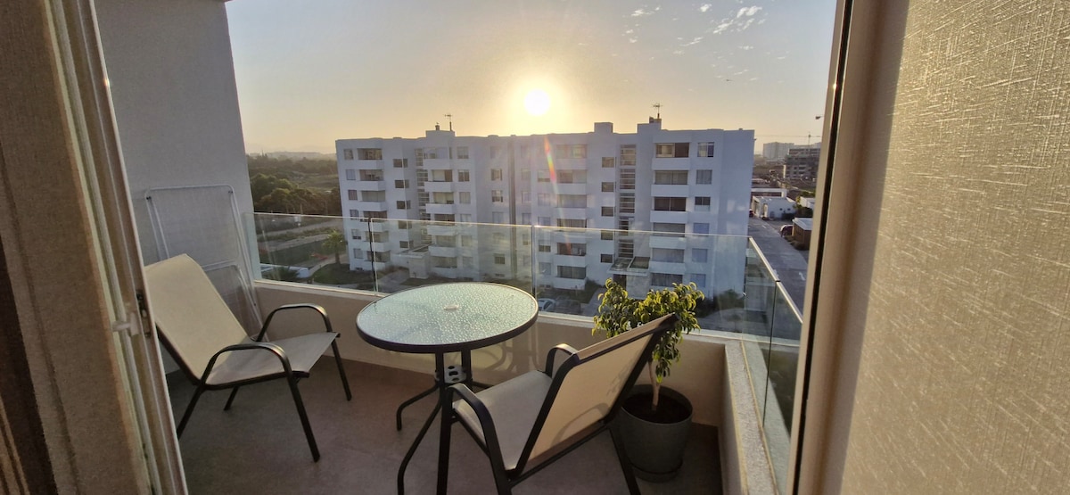Hola! Somos depto Toledo. Estamos a pasos del Faro y la playa. Contamos con 2D/2B, piscinas, estacionamiento gratis, WiFi de alta velocidad y 2 balcones privados. Ideal para familias, parejas, vacaciones o teletrabajo. 🛍️15% OFF semanal y 30% OFF mensual. Emitimos factura. 🏊♂️Acceso a 4 piscinas, quinchos, co-work y áreas deportivas. 📍Ubicación segura y cercana a terminal de buses, supermercados, cafés y restaurantes.
