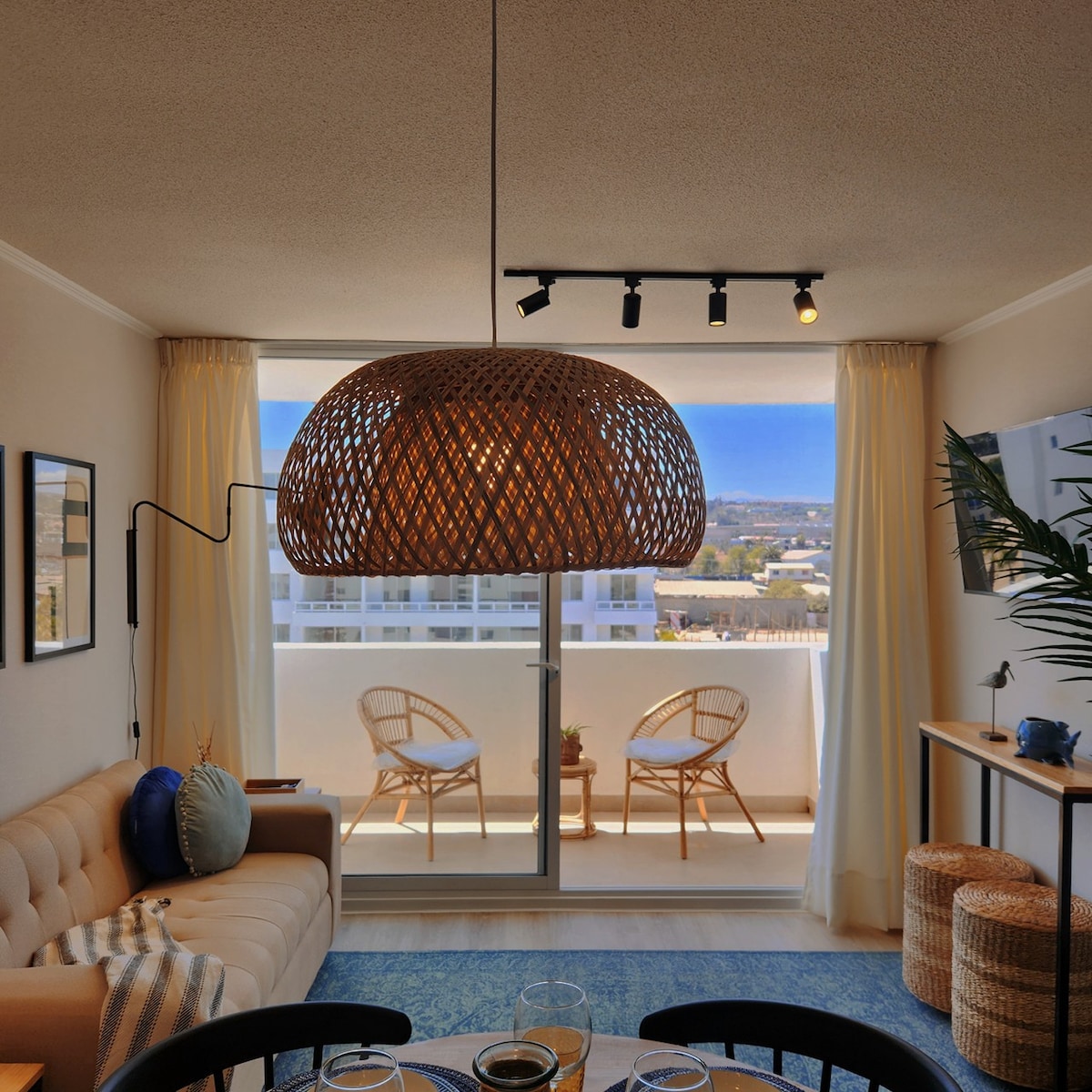 Moderno y cómodo departamento cercano al Faro Monumental y la playa. Perfecto para descansar o teletrabajar, con WiFi rápido, cocina full equipada, Smart TV y estacionamiento privado. En condominio nuevo, seguro, tranquilo y con amplias áreas verdes. Muy cerca de restaurantes, supermercados y atractivos turísticos. Disfruta La Serena y su icónica Avenida del Mar con todo lo que necesitas para una estadía inolvidable cercano al mar.