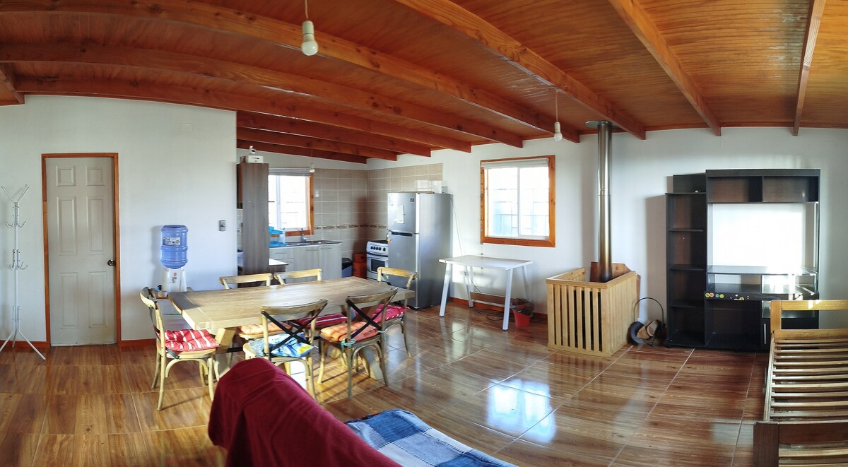 Aquellos que necesitan un lugar de descanso tranquilo y conectado con la naturaleza les menciono que este es su lugar. No hay nada mejor que levantarse y mirar las colinas y el mar en el horizonte con la vista distante de Guanaqueros, el canto de las aves y/o escuchar solo el sonido del viento. Es realmente un lugar para desconectarse de la civilización. Un lugar de harto espacio, con cama saltarina para los pequeñines.