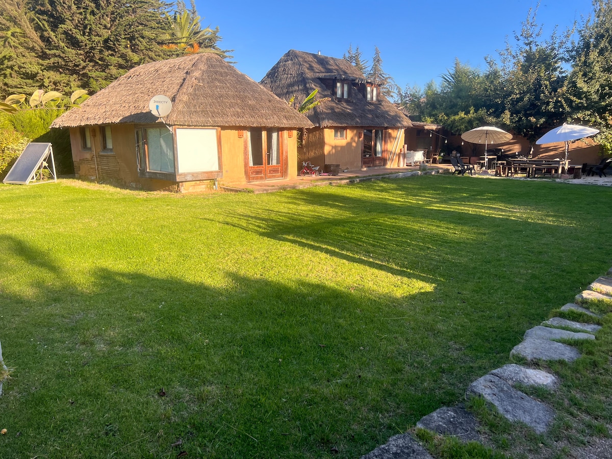 La casa de barro entrega una linda experiencia junto a la construcción natural. Posee un altillo con cama dos plazas , ideal para desconectar de la ciudad con nuestra casita y la piscina. Nuestro alojamiento se encuentra en una zona rural tranquila, a unos 15 minutos de la costa en automóvil . Actualmente no contamos con WiFi, así que recomendamos usar tus datos móviles. Se aceptan perritos con cargo adicional .