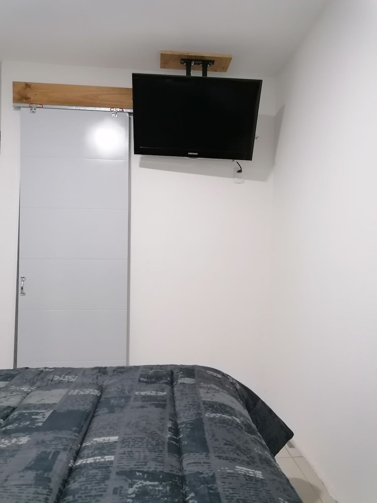 Acogedora y moderna habitación para dos personas, equipada con una cómoda cama matrimonial, cocina totalmente equipada, zona de estar, TV, Wi-Fi y baño privado. Ideal para estancias cortas o largas, ofreciendo comodidad y autonomía en un ambiente.