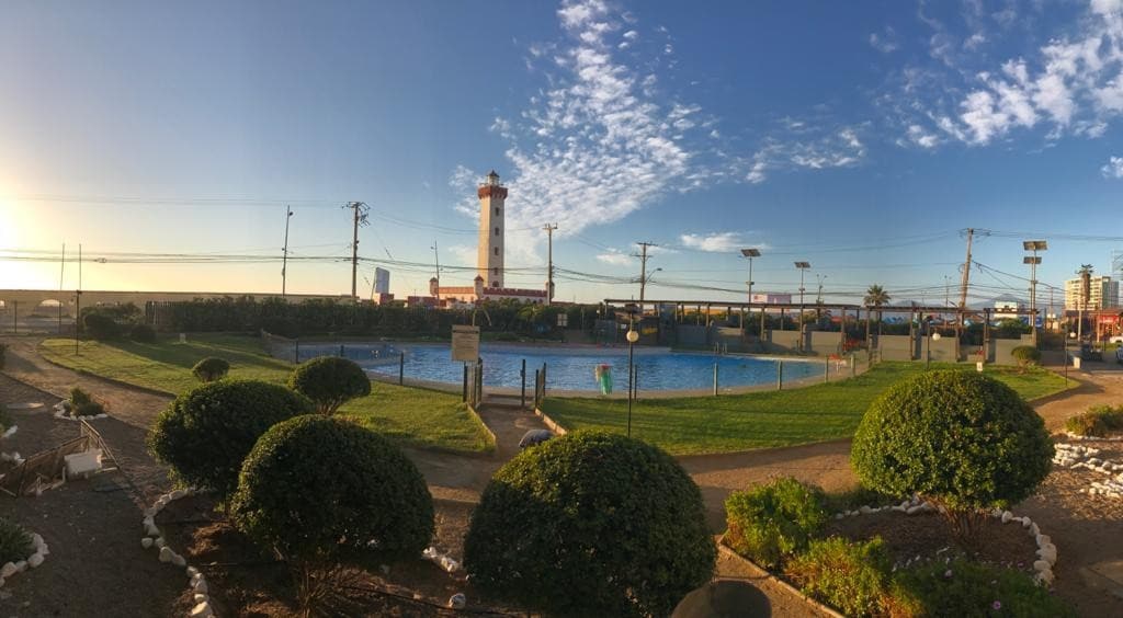 departamento en Laguna del Mar, La Serena, con vista directa al Faro Monumental. Ubicado en segundo piso, completamente equipado, dos baños dos camas y una matrimonial , ropa de cama toallas y sábanas. con acceso a playa privada, piscinas, seguridad 24/7 y excelente ubicación frente al mar. * 3 piscinas adultos y niños * Cancha de tenis y voleibol. * Seguridad 24/7 y acceso controlado. * A solo 5 minutos a supermercado, mall Puertas del mar * 10 minutos al centro de La Serena (auto)