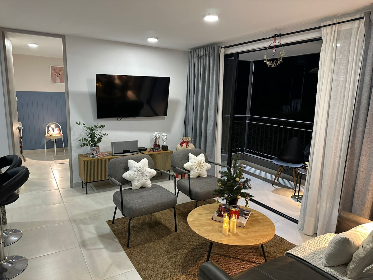 ¡Relájate con estilo en este moderno apartamento en Fusagasugá! Cada rincón está lleno de diseño y confort, con dos habitaciones únicas (ambas con escritorio), tres baños completos, una sala temática con sofá cama y una zona de cocina y sala con abundante luz natural. El conjunto cerrado te ofrece piscina, gimnasio y salón de juegos con billar y ping-pong. Es el refugio perfecto para una escapada, un viaje de trabajo o simplemente para descansar. ¡Ideal para ti y tu familia!