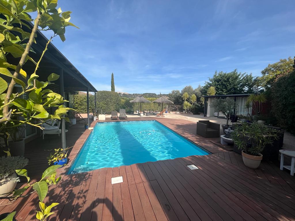 Chambre d'hôtes disponible dans villa contemporaine avec totale indépendance. Position dominante, sans vis à vis offrant une magnifique vue mer et sur la baie de Sanary. La chambre est en rez de villa avec un extérieur agréable, terrasses, paillote,... Celle-ci dispose de sa salle d'eau et est climatisée. 2 WC privatifs le premier dans la maison, le second dans la paillote. La piscine est accessible dès que vous le souhaitez et chauffée à 29°C jusqu au 30 octobre minimum.