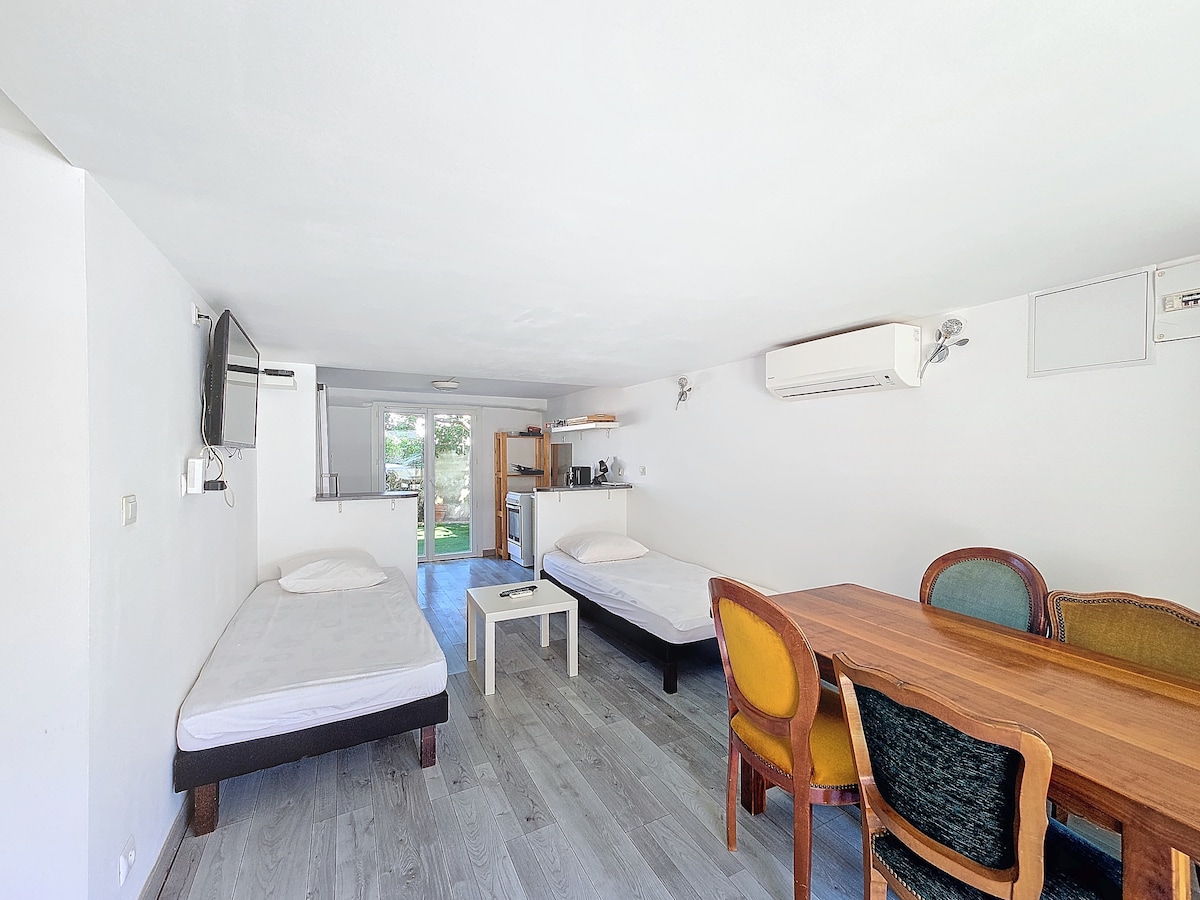 Quartier résidentiel du Faron, dépendance climatisée de 20m2 décorée dans une ambiance méditerranéenne... Pièce principale composée d'un coin salon, d'un coin nuit, d'une kitchenette, d'une salle d'eau avec wc et d’une terrasse privative... Stationnement facile et gratuit dans la rue. Studio idéalement situé proche de la gare de Toulon, des commerces, des plages et des lieux touristiques, un véhicule est de préférence nécessaire pour vos déplacements.