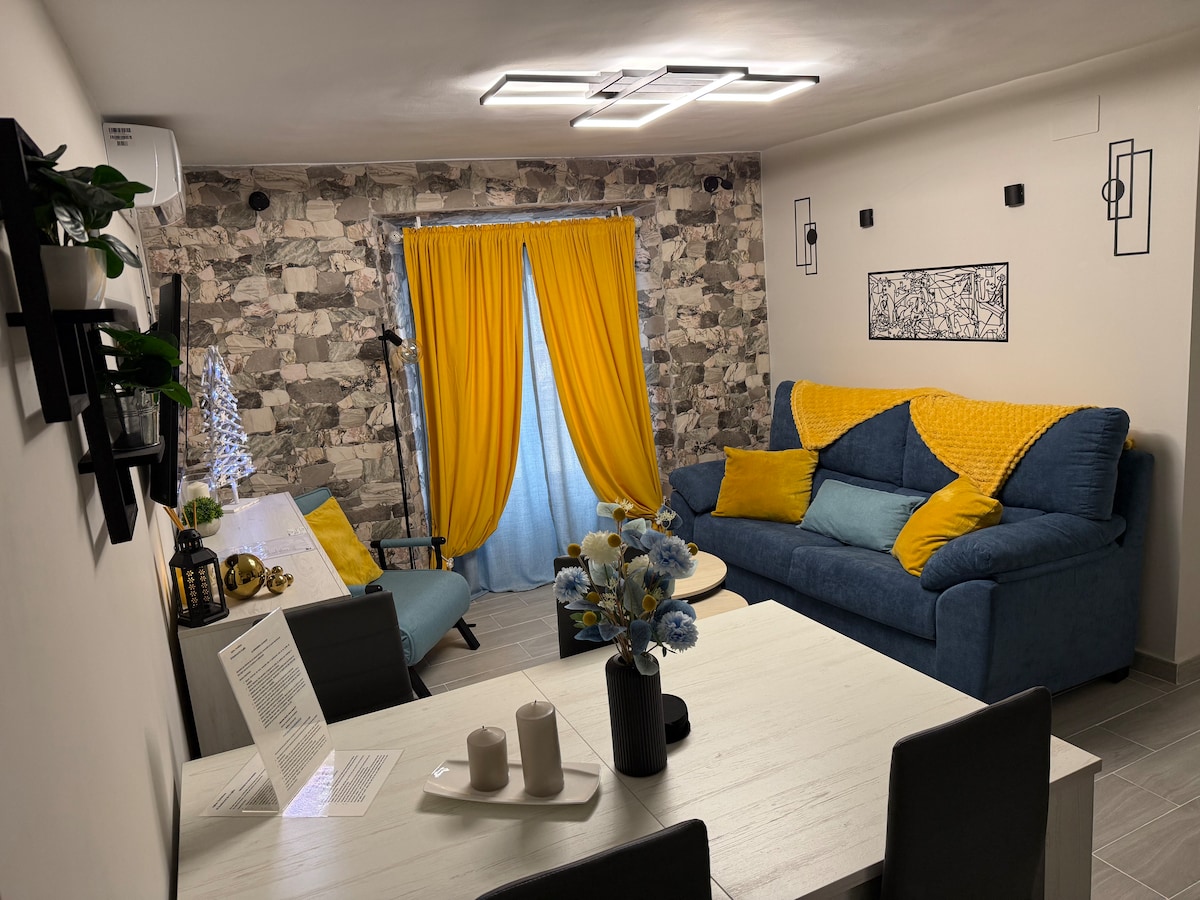 El alojamiento es un apartamento de un dormitorio con la cocina integrada en el salón. Está completamente nuevo. Tiene capacidad para cuatro personas. Dos personas pueden dormir en la cama de matrimonio que está en el dormitorio y otras dos personas lo pueden hacer en la cama del sofá-cama que está en el salón y tiene tamaño de cama de matrimonio. Está situado en el centro de Don Benito, muy cerca de la plaza de España. Tienes a mano bares, restaurantes, terrazas, supermercados, tiendas,...