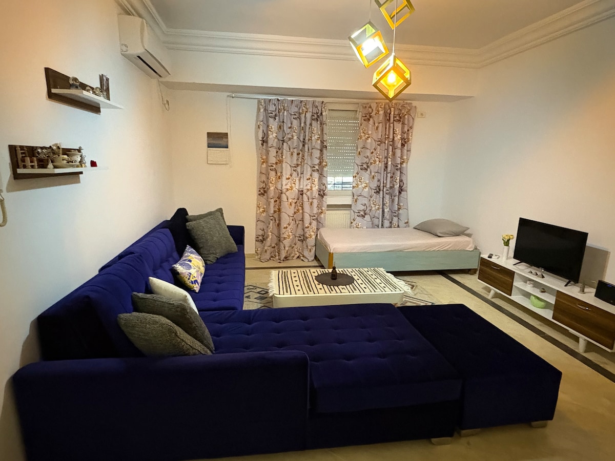 Be comfortable during your stay in Tunis. 12 minutes away from the airport. 🕣✈️ 🛋️ Spacious and very well decorated 🛁 Hot water and a bathtub 🛜 Strong wifi connectivity 👨💻 Proper workspace 👩🍳 Well equiped kitchen 📚 Must read books ❄️ Air conditioner and heaters Located in a residential and affordable area: 🏋️Gym ☕️Coffeeshops 🛒Supermarket 🥫Various merchants 🥖Bakery just in a 200 meters diameter Perfect for digital nomads or someone who is passing by Tunis for a few days.