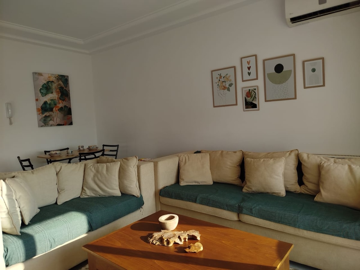 Situé dans un quartier récent, à proximité de toutes les commodités, cet appartement unique est un véritable hommage au savoir-faire des artisans locaux, qui ont tous contribué à sublimer cet espace. Dans une atmosphère chaleureuse et accueillante, vous aurez l’occasion de vivre pleinement l’authenticité et la richesse de la culture artistique tunisienne, incomparable en son genre. Chaque détail a été soigneusement pensé pour vous garantir une expérience de séjour inoubliable.