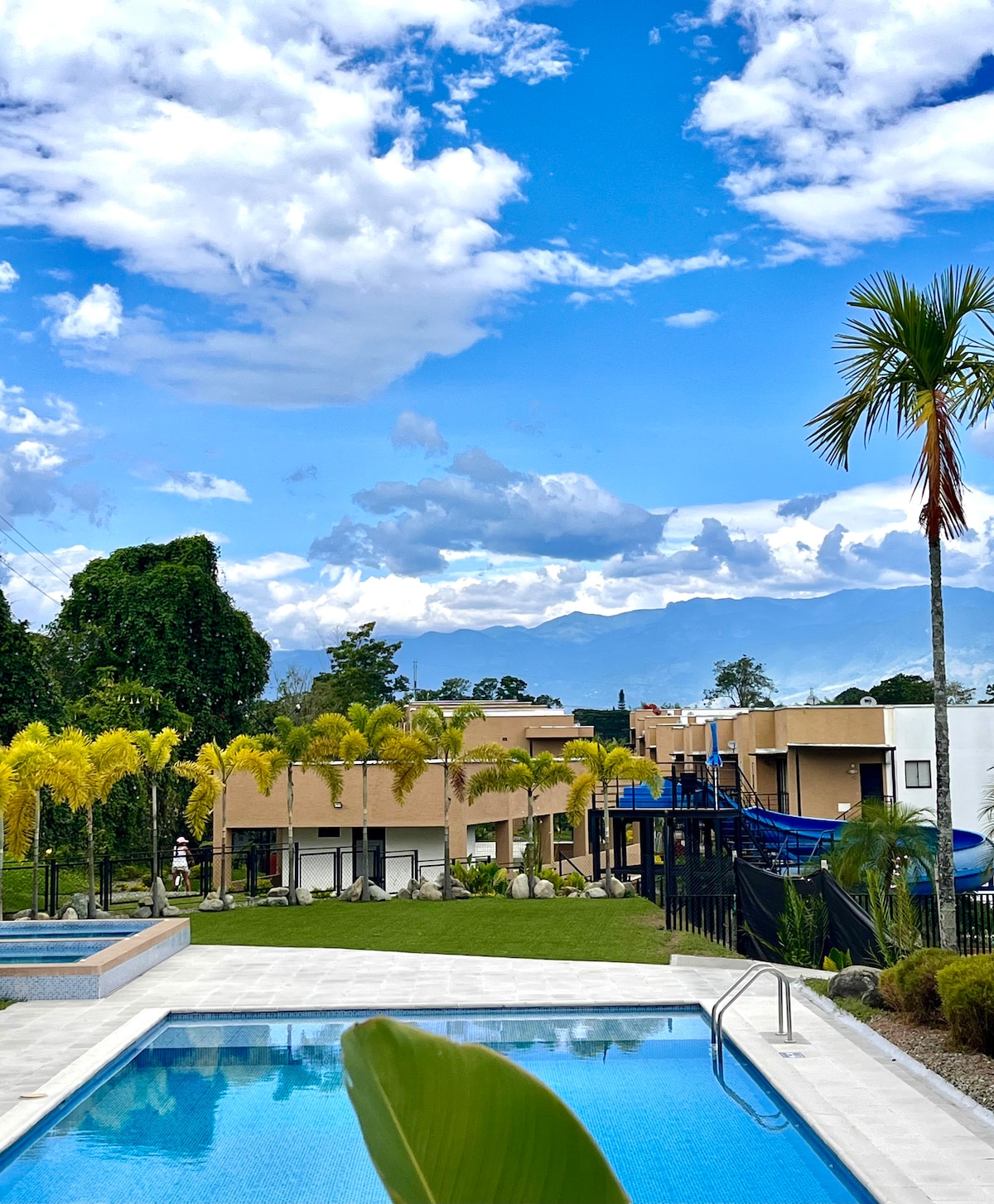 This brand new apartment is located in the charming town of La Tebaida , Quindio. Surrounded by the Andes mountains, La Tebaida is known for its warm weather and diverse gastronomy. It is conveniently located 5 minutes away from El Eden international airport. Reserva de la Colina offers resort like amenities such as 24 hr security, kids pool, adult pool, soccer field, hot tub, sauna among others. Unplug from the stressful city life and enjoy a nice cup of coffee from your private balcony.