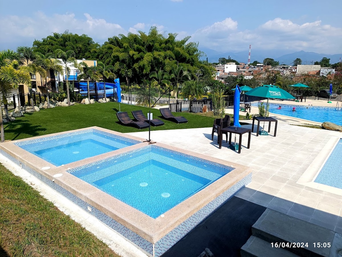 Apartamento nuevo con capacidad para 7 personas, ubicado en el municipio con el clima mas cálido del departamento del Quindío. A tan solo 5 min del aeropuerto, 18 min de Armenia y muy cerca a sitios turisticos tales como el Parque del Café, Salento, Valle del Cocora y Panaca. El condominio cuenta con vigilancia privada las 24 horas, parqueadero privado gratuito, 3 hermosas piscinas tipo Resort, Sauna, Jacuzzi climatizado, zona de arenas para niños, juegos infantiles y cancha sintética
