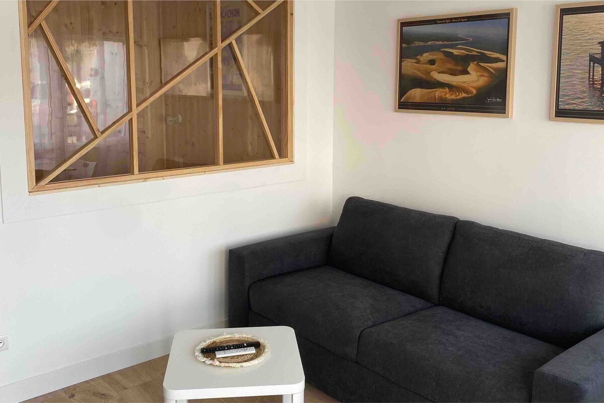 Stay in a luxury residence, feet in the water! New 2-room apartment with parental suite, bright living room with semi-open kitchen. A south facing balcony and a parking space complete the services. Halfway between the pier of Eyrac and the marina, 5 minutes from the Casino and 10 minutes walk from the train station. Private access to the beach! You just have to put your suitcases and extend your towel on the sand. Welcome home !