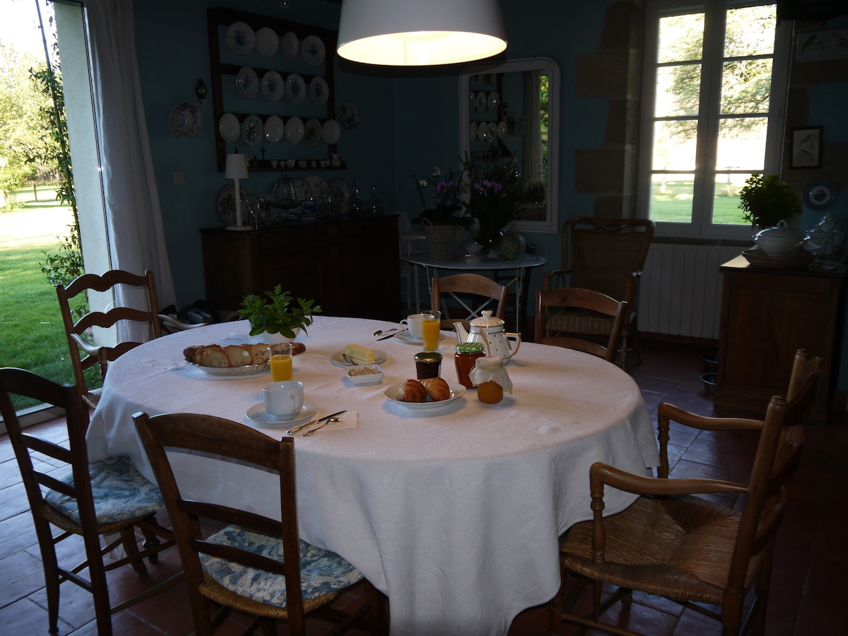 Vaste chambre d'hôte avec salle de bains privative et coin cuisine. Lit 160X200, coin salon. Petit-déjeuner inclus. Table d'hôtes possible le week-end. La chambre est située dans un bâtiment autonome et dotée d'une entrée extérieure indépendante. Centre ville, plage et port ostréicole accessibles en 10 à 15 min via la piste cyclable (prêt de vélos possible). La plage océane du grand Crohot est à 20 min en voiture.