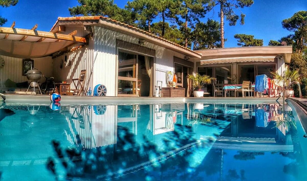 * Idéal famille, parcelle ombragée/clôturée, Wifi gratuit * Chalet climatisé 35m2 + terrasse couverte fermée 10m2 (ouverture possible par beau temps), terrasse bois 22m2 avec bains de soleil/chiliennes * Piscine avec toboggans (mai-septembre) * Parc résidentiel de loisirs 4 étoiles, au cœur de la forêt, nombreuses activités : tennis, Accro-Park enfants, City stade, aires de jeux enfants, restaurant-bar-épicerie... * A 15 minutes dune du Pyla, bassin d'Arcachon, Aqualand, zoo, plages océanes...
