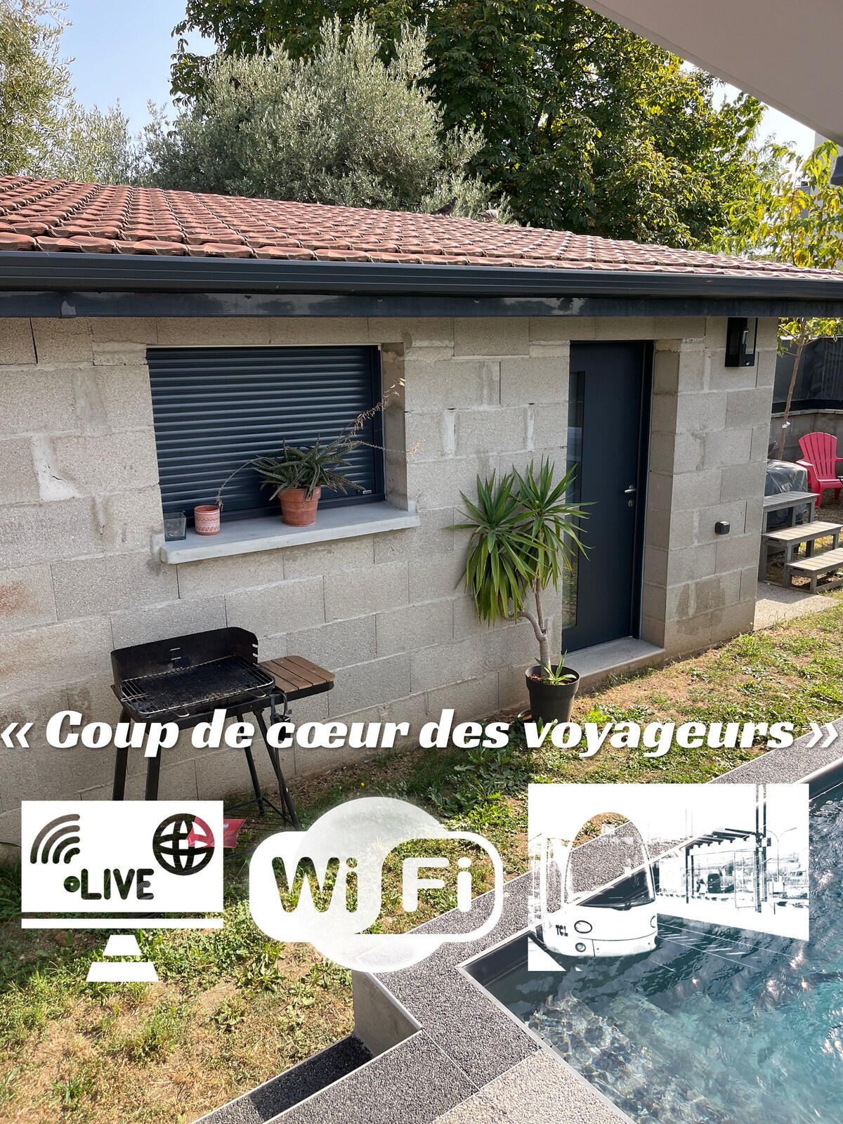 Charmante maison indépendante avec terrasse 🌿, idéale pour 4 voyageurs. Chambre avec lit 160cm, salon avec canapé convertible, cuisine équipée, salle de douche et WC séparés. Climatisation ❄️ et entrée privée 🚪. Place de parking sécurisée sur la propriété 🔒. Proche Groupama Stadium ⚽, Eurexpo et commerces 🛒. Lyon Part-Dieu à 15 min en tram 🚋, aéroport accessible via Rhônexpress ✈️.