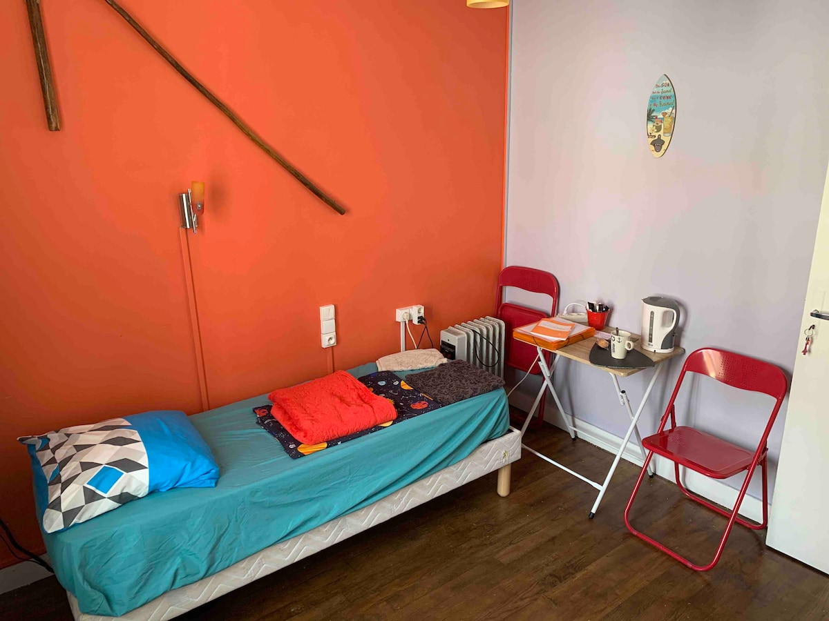 Nous louons une chambre très simple dans notre maison. Nous sommes un couple d'une très grande gentillesse. Nous avons des soucis de santé et nous vous demanderons de venir avec votre literie ou sac de couchage et serviettes. Vous aurez pas accès à la cuisine ni au micro-ondes. Nous précisons que la salle de bain est en famille. Nous sommes à 700 m du centre-ville et de la gare. Le ferry est à 7 minutes à vélo. Pour les cyclistes les vélos seront attachés dans notre jardin.