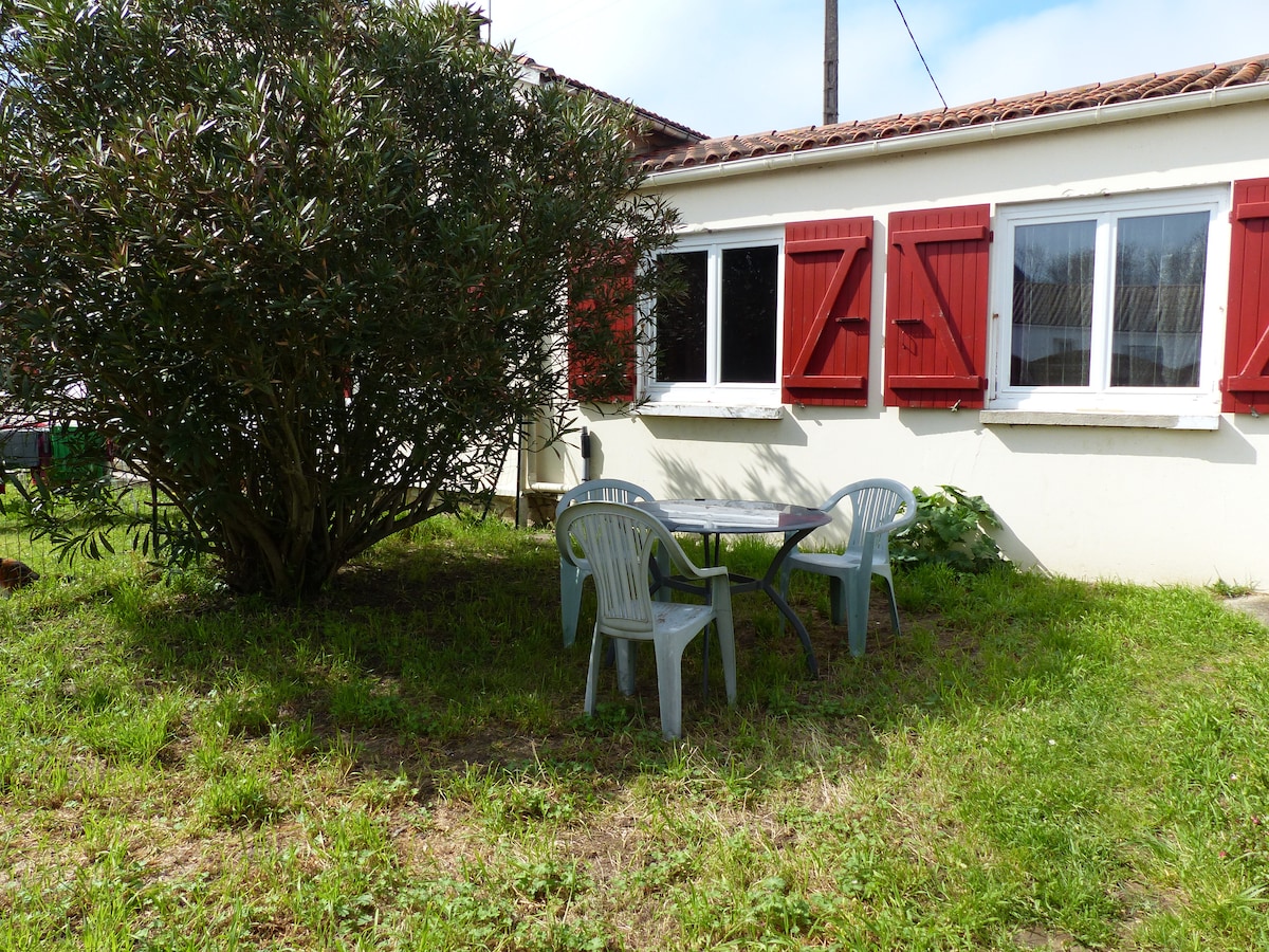 Petit cottage à ossature bois de plein pied , cocooning, au calme, entre mer et lisière de forêt. Une grande terrasse en bois de 25m2 et un petit espace extérieur vous permettront de profiter en toute tranquillité des transats et chaises longues à disposition. La plage des Vergnes est située à 600m, l’accès est très facile à pieds, à 7km se trouve le village classé de Talmont ( accessible à vélo via une piste cyclable).