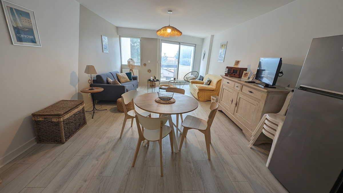appartement récemment rénové pour plus de confort. Le logement est agréable, joliment décoré et bien équipé (four électrique, four micro-ondes, plaque induction, lave-vaisselle, lave-linge, Tassimo etc idéal pour un couple Une jolie pièce à vivre avec un canapé lit (2 places) téléviseur et chromecast. connexion wifi La chambre est de belle taille donnant sur le jardin avec un grand dressing et un lit 160 Une petite salle de bain avec douche italienne, sèche serviette et toilettes